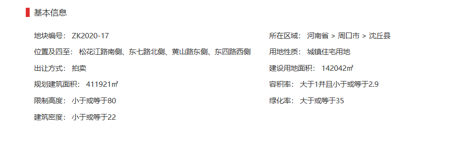 根据周口土拍网资料显示,松花江路黄山路zk2020-17地块用途为城镇住宅用地。规划综合容积率1-2.9,绿地率≥35%,建筑密度≤22%。限高≤80米。从地块的低容积、高绿化、低建筑密度以及周边配套来看,此地块未来在商业、文化、居住环境、教育等资源方面将会有较大优势。地处周口市东新区重点发展新区,较全面的区位配套,良好的居住环境,都标示着该区块具有不可估量的人居价值与城市生机。